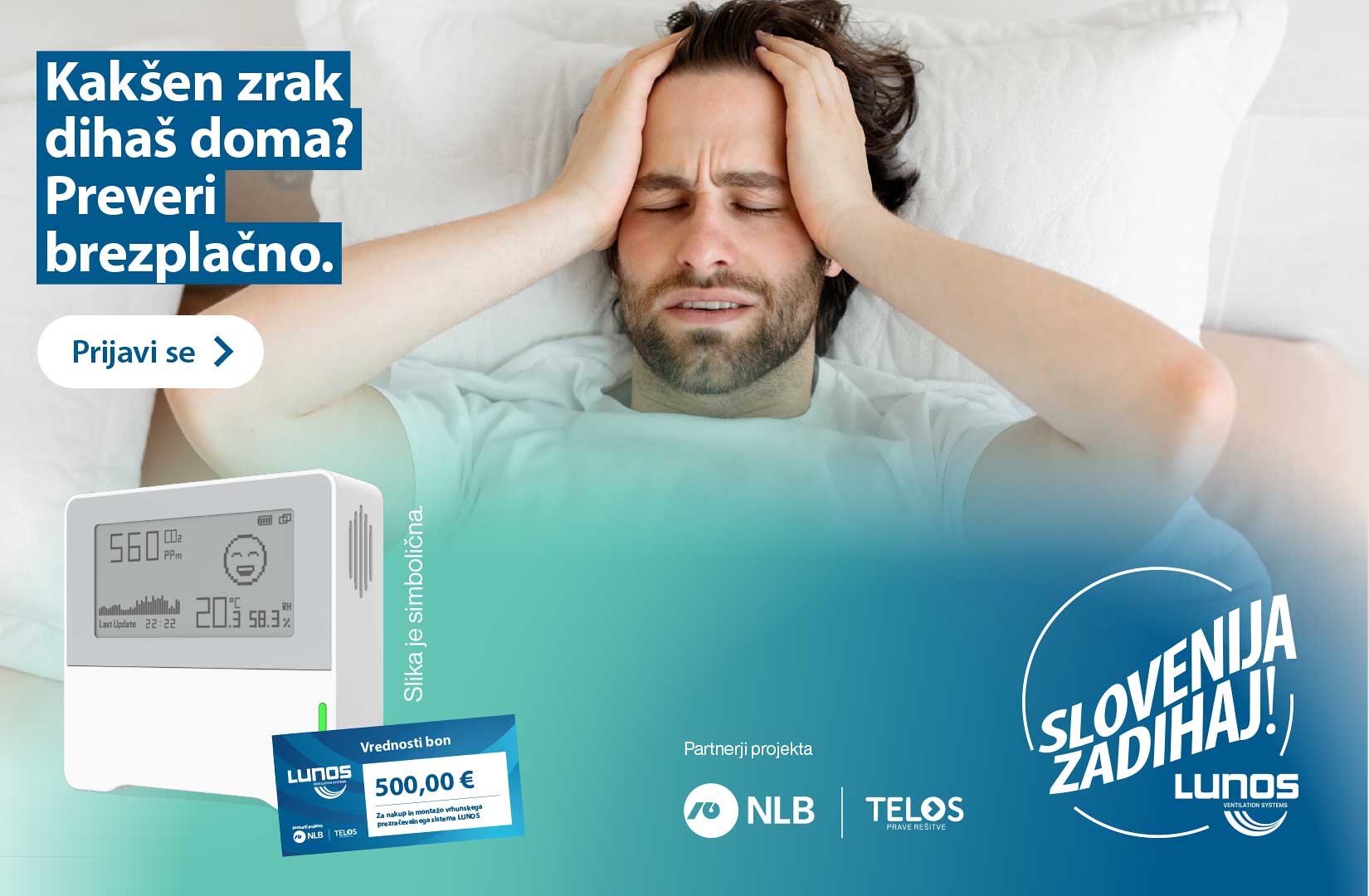 Kakšen zrak dihate doma? To vprašanje si redko zastavimo, čeprav v zaprtih prostorih preživimo več kot 90 odstotkov svojega časa. Prav zato je podjetje LUNOS Slovenija začelo projekt »Slovenija, zadihaj. Z LUNOS-om«, katerega cilj je ozaveščanje o pomenu kakovosti zraka v zaprtih prostorih ter pomoč prebivalcem Slovenije pri izboljšanju bivalnega okolja.